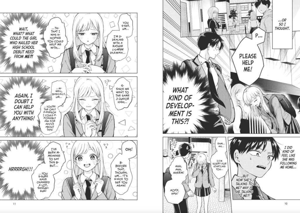 Unfortunately, Shizuki has caught the attention of the prettiest girl at school, who also happens to be his classmate, Shizuka Kusunoki. As it turns out, Kusunoki also attended Shizuki’s middle school, but since they were in different classes, the two never spoke. They simply spent time together reading in the library, since they were both outcasts at the time. However, although Kusunoki has given herself a glow-up, she’s still struggling to make friends. Having seen how Shizuki’s makeover has worked out for him, she turns to him for friendship and advice.
