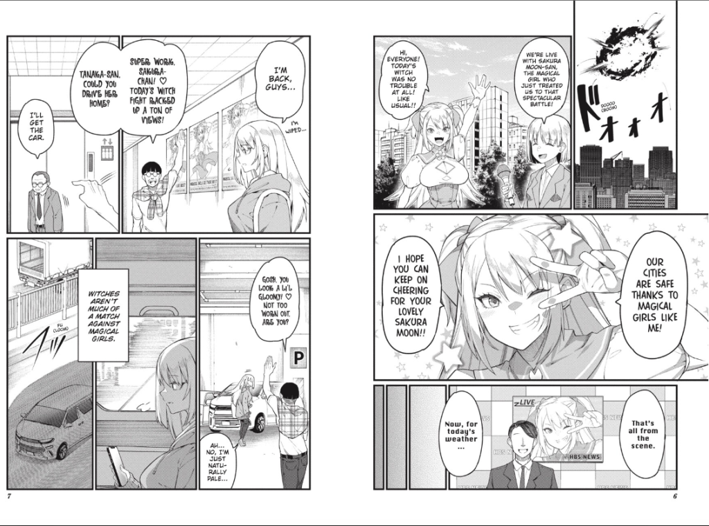 At first glance, the magical world of Midlifer seems to be a fun twist on the Magical Girl genre. Instead of the girls working in the shadows and having to hide who they are, they are in the forefront, ranking up streaming numbers and it’s a middle-aged man (who looks like someone from admin) that works in the shadows doing the hard work. The problem lies in the clash between these two worlds: magical girls only kill witches who, in this volume, seem to be a lot weaker than their familiars. This begs the question of why witches don’t just use their familiars in battle as they are shown to be much scarier and stronger. Also if magical girls are merely performing a role, then the one agent telling one magical girl to ‘get stronger’ doesn’t really match up.