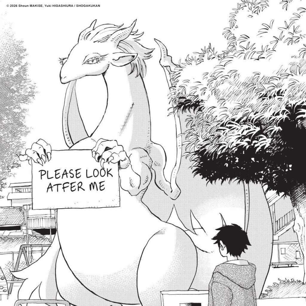 Murakami is walking past the park on his way to buy something for lunch when he sees a dragon. The dragon is definitely not a statue – and it’s holding up a sign which reads, ‘Please Look Atfer Me.’ Murakami (who’s a student) has seen plenty of dragons in video games and anime but he doesn’t expect to be addressed directly by the dragon who bursts out, “I am neither an auditory or a visual hallucination. You can read this, can’t you? Did I not spell it correctly?” Murakami can’t help but point out the typo and one thing leads to another.